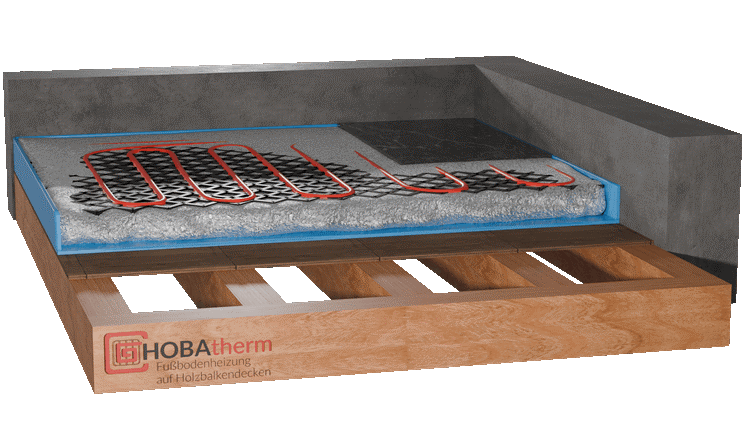Podlahové vytápění - systém HOBAtherm na dřevěný záklop